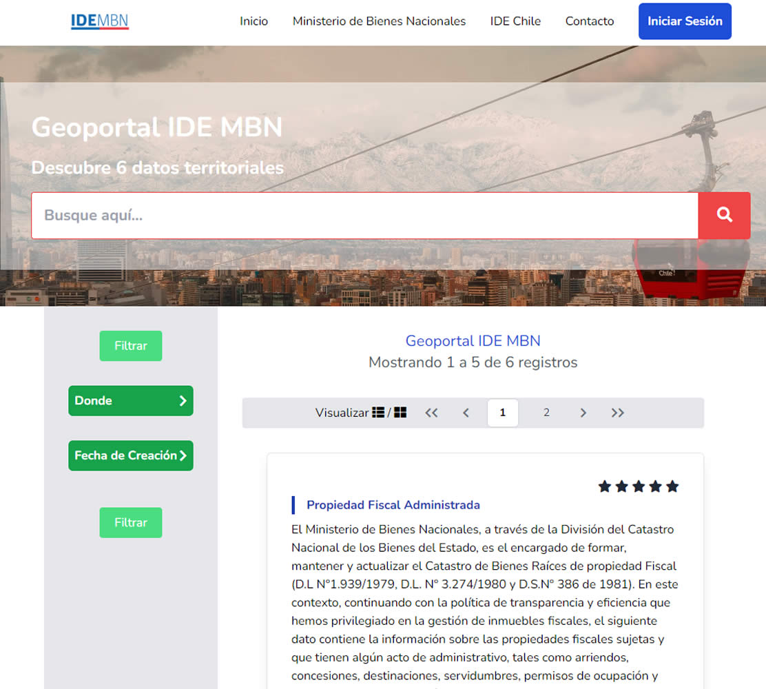A través del sitio web ide.bienes.cl podrá acceder a su catalogo, visualizador, servicios de mapas y capas descargables.