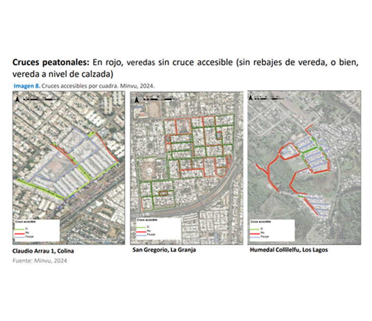 Durante 2024, en el marco del Plan Ciudades Justas del Ministerio de Vivienda y Urbanismo, la Política y Plan Nacional de Cuidados y el Plan Nacional de Accesibilidad Universal , el Centro de Estudios Ciudad y Territorio elaboró el primer estudio de accesibilidad universal, curso de vida, género y cuidados. Este estudio fue implementado en tres casos piloto del Programa Quiero Mi Barrio: San Gregorio (comuna de La Granja), Claudio Arrau I (comuna de Colina) y Humedal Collilelfu (comuna de Los Lagos). Los barrios de la región metropolitana se corresponden con características urbanas, mientras que el barrio de la comuna de Los Lagos tiene una vocación más cercana a la ruralidad.